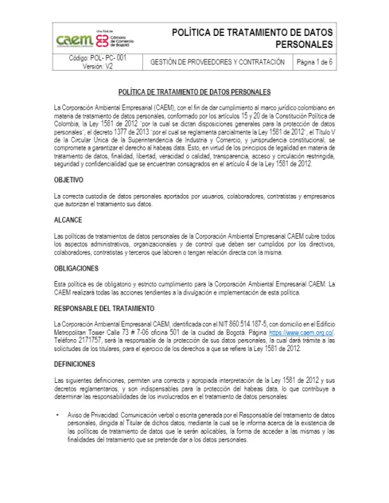 Política de protección de datos